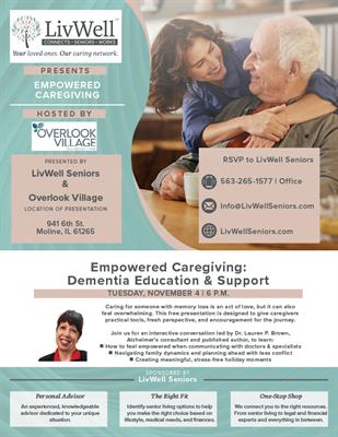 Join us for an interactive conversation led by Dr. Lauren P. Brown, Alzheimer’s consultant and published author, who brings warmth, expertise, and real-world strategies to every session.