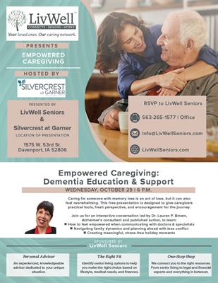 Join us for an interactive conversation led by Dr. Lauren P. Brown, Alzheimer’s consultant and published author, who brings warmth, expertise, and real-world strategies to every session.